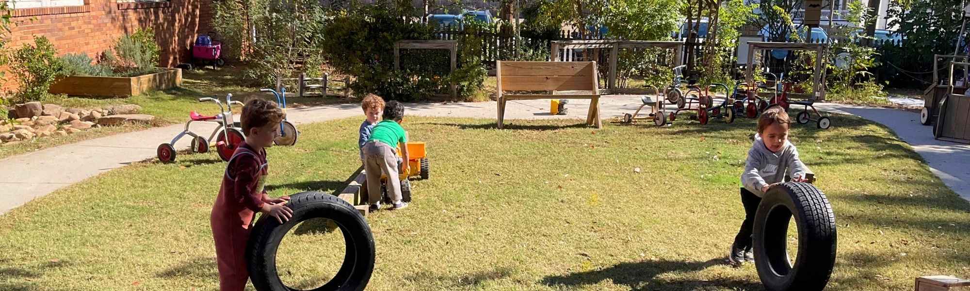 The children spend a significant amount of their time outside in the Mark Treadwell Play Garden, named for a beloved member of the OCP community.